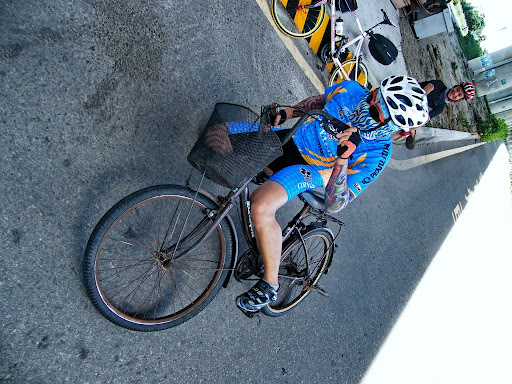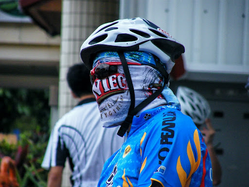 終於..全部裝備齊全了 安全帽.眼鏡.那煞的面罩.車衣.....紋身..