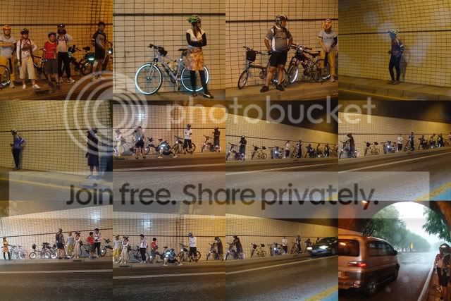 此時 YES女王:在這邊濕 騎回去也濕 那就走吧!找避雨的地方 騎了500公尺 才看到一個小小鐵皮ㄨ(公車亭樣式) 躲雨 與麥片通電話 得知他已經到家已久 沒淋到雨就好 與阿德通電話 得知除了我們三人以外 皆在隧道兩側 ↓ 我們三人等到發抖~~寒意由下往上~~決定不等了~~ 與風雨共舞~~ GO! 騎了幾個坡 一段路 才在左手邊看到一間萊爾富 此時約下午兩點15分左右 買了3只塑膠袋 一人一個 開始打包貴重物品(手機、mp3...相機..等) 還有喀了阿頡買的巧克力棒 一人一棒 當下三人ㄉ小小小小幸福 ![]()